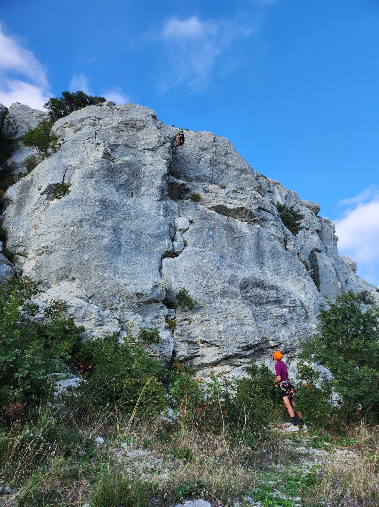 We had gusty winds on the day we visited – this made the climbing a bit more exciting. The rock felt more slippery and less sharp compared to Paklenica – perhaps the winds increased the feeling of insecurity… There are also hiking trails in the area, the carpark area was actually quite busy, but not a soul at the crag.