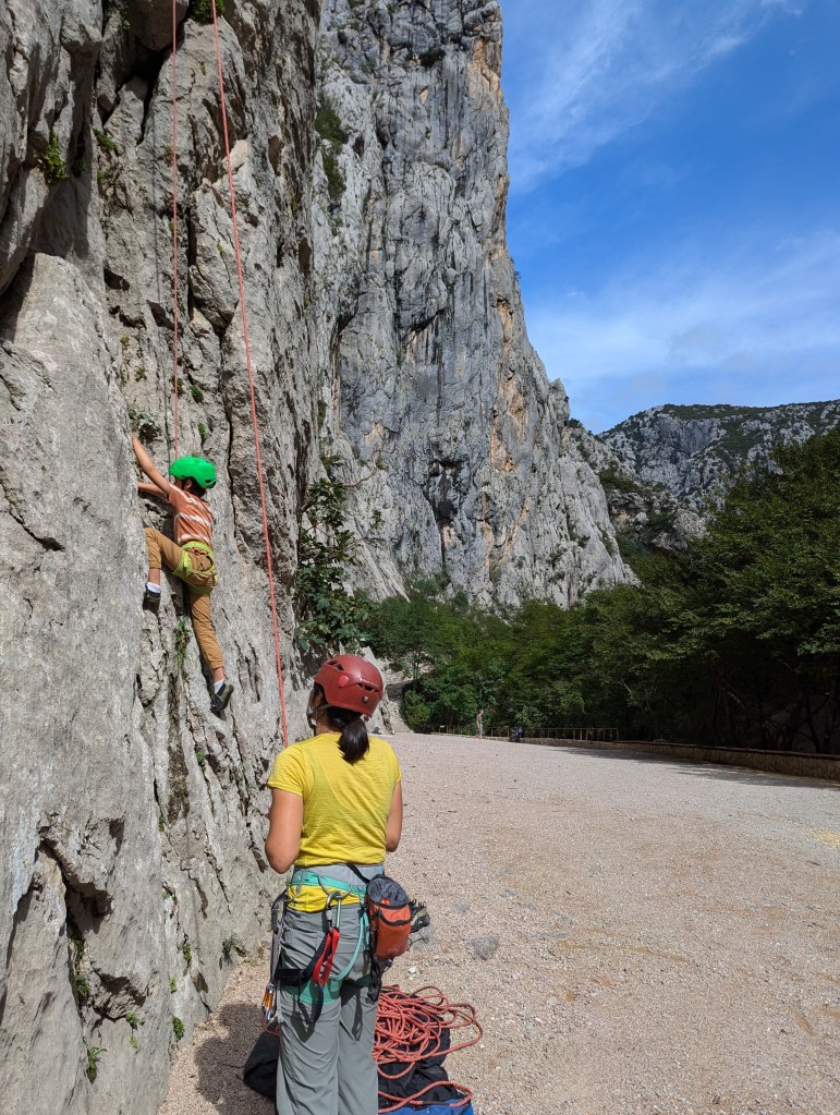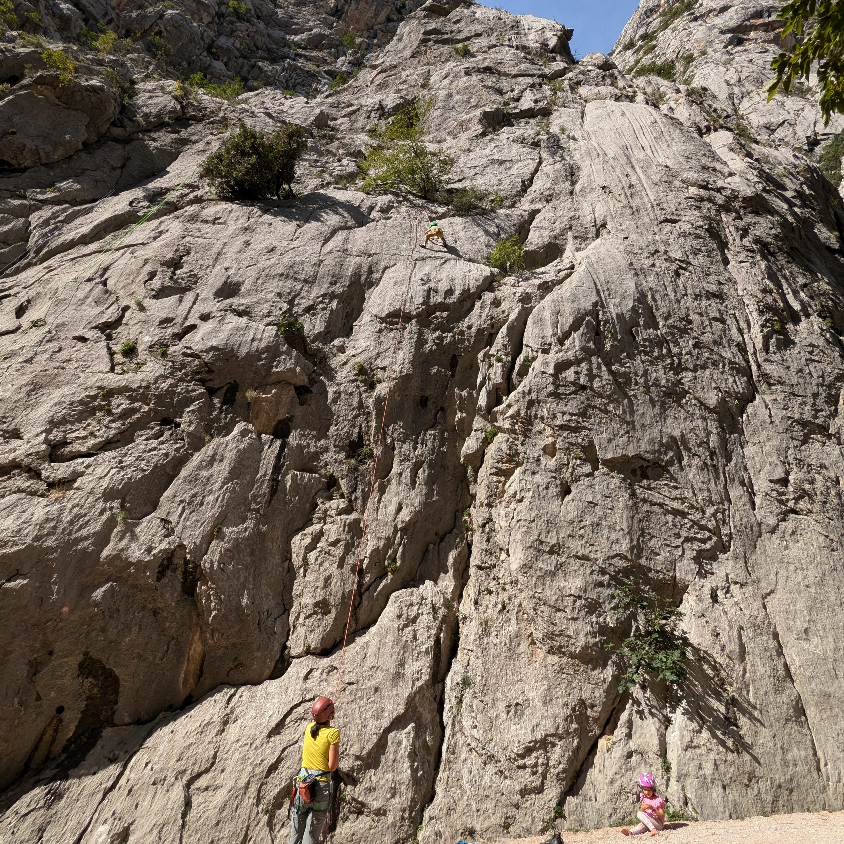 Paklenica serves up a high number of routes on a silver platter making it difficult to know where to start. We ended up picking some lines we liked the look of, that were dry and *bonus* right next to the ‘underground bunker museum‘ which was small but the kids and grandparents really enjoyed – and ironically included a small kids bouldering room. There are a whole host of single-pitch climbing areas all along the main footpath from the car-park – super kid-friendly but not super-wild and a little bit ‘on-show’ for passing visitors! There are more remote climbing areas and adventurous multi-pitch adventures to be had – perhaps less kid-friendly but plenty more to explore that’s for sure. Note that there is a daily fee to enter (per person) and park (per vehicle).
