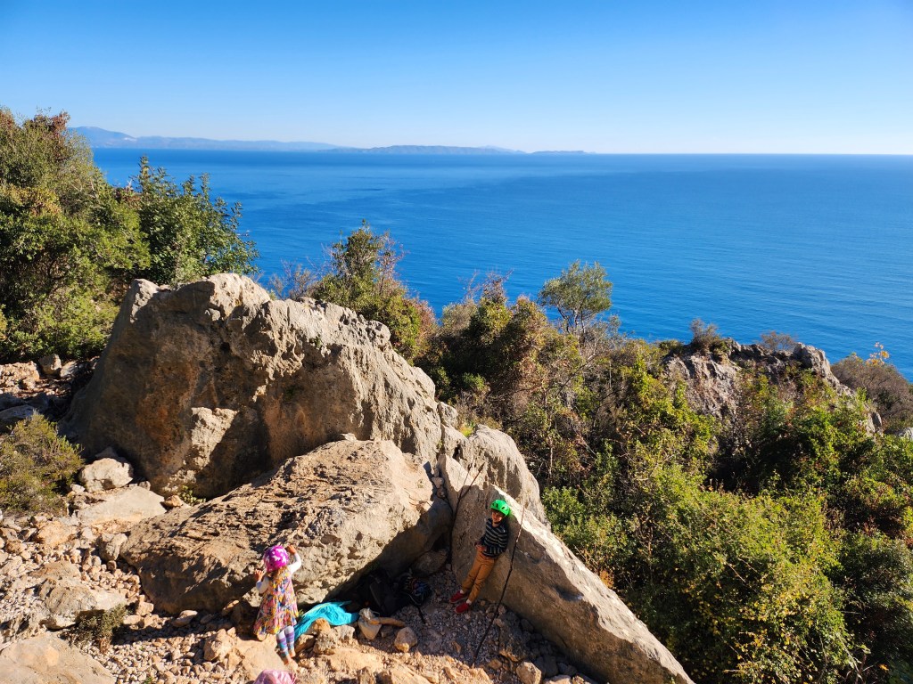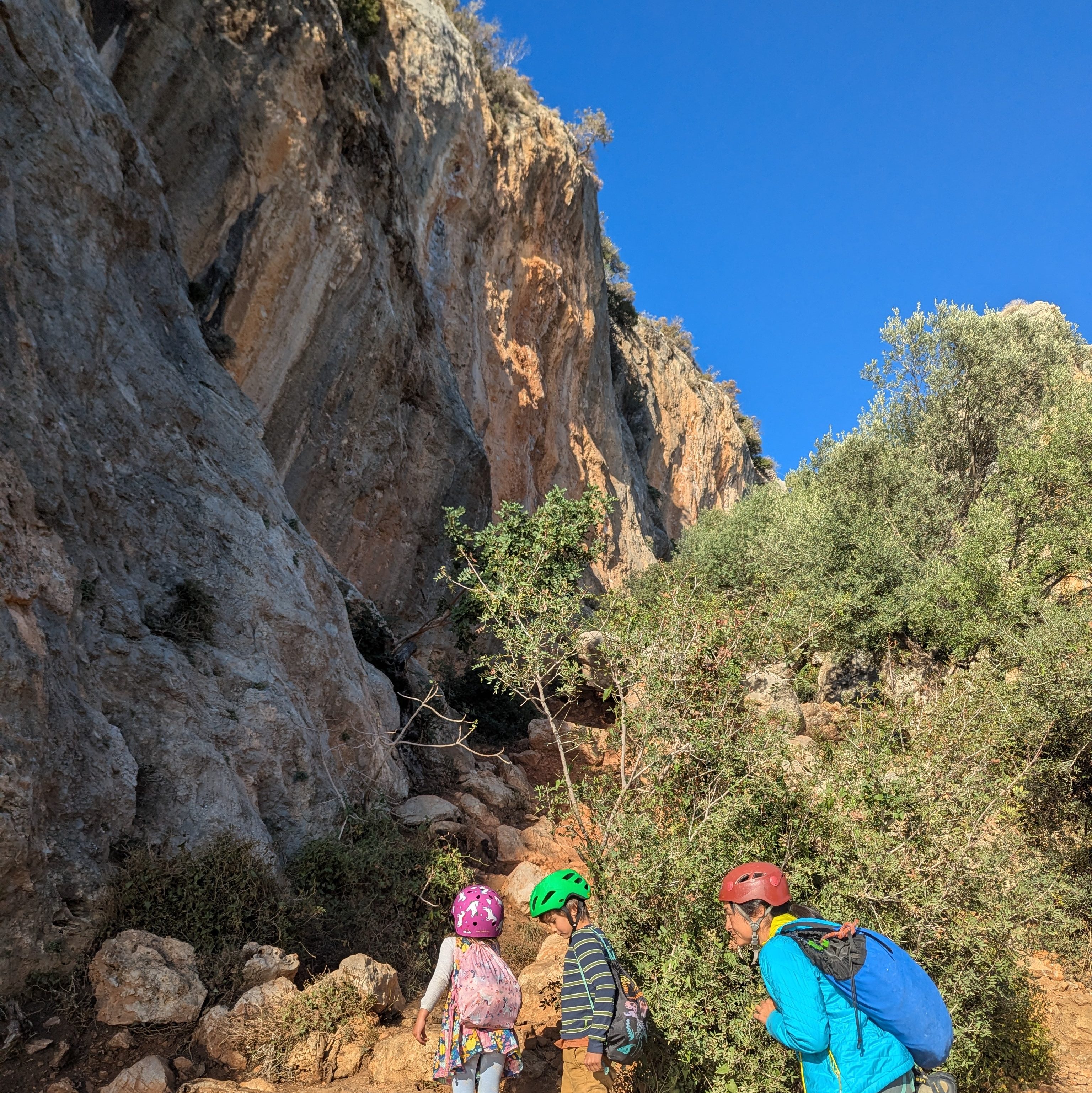 Leonidio is a climbing mecca and many people will spend a whole season here and return again and again. We only had time for a couple of crags and tried to pick 2 that worked well for families and winter climbing. The Panjika Cooperative climbing guidebook clearly shows that there is much more to discover as a family, especially if you are looking to have a single base and hard climbs (unlike the Argolis where crags are more spread out and grades are mostly middling).