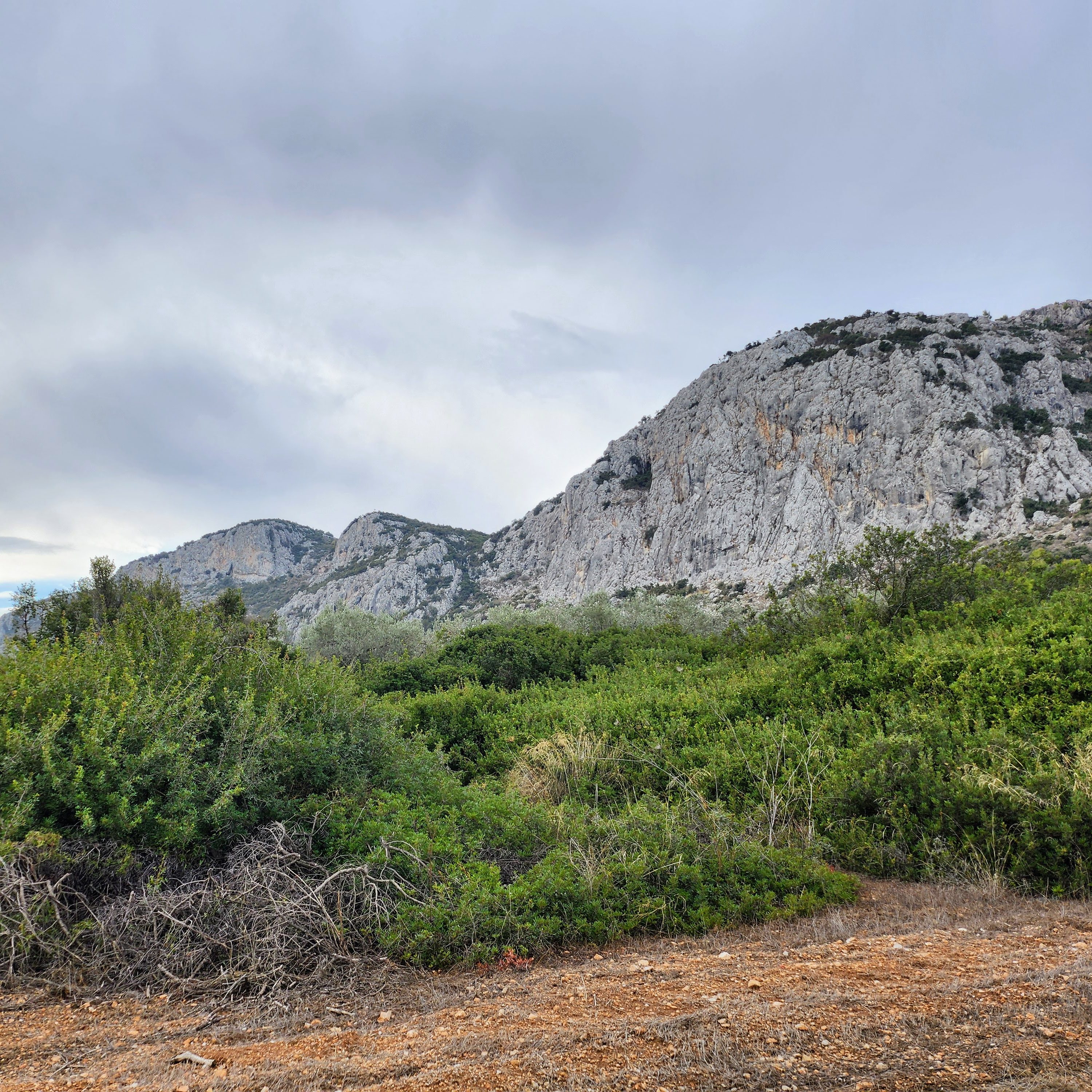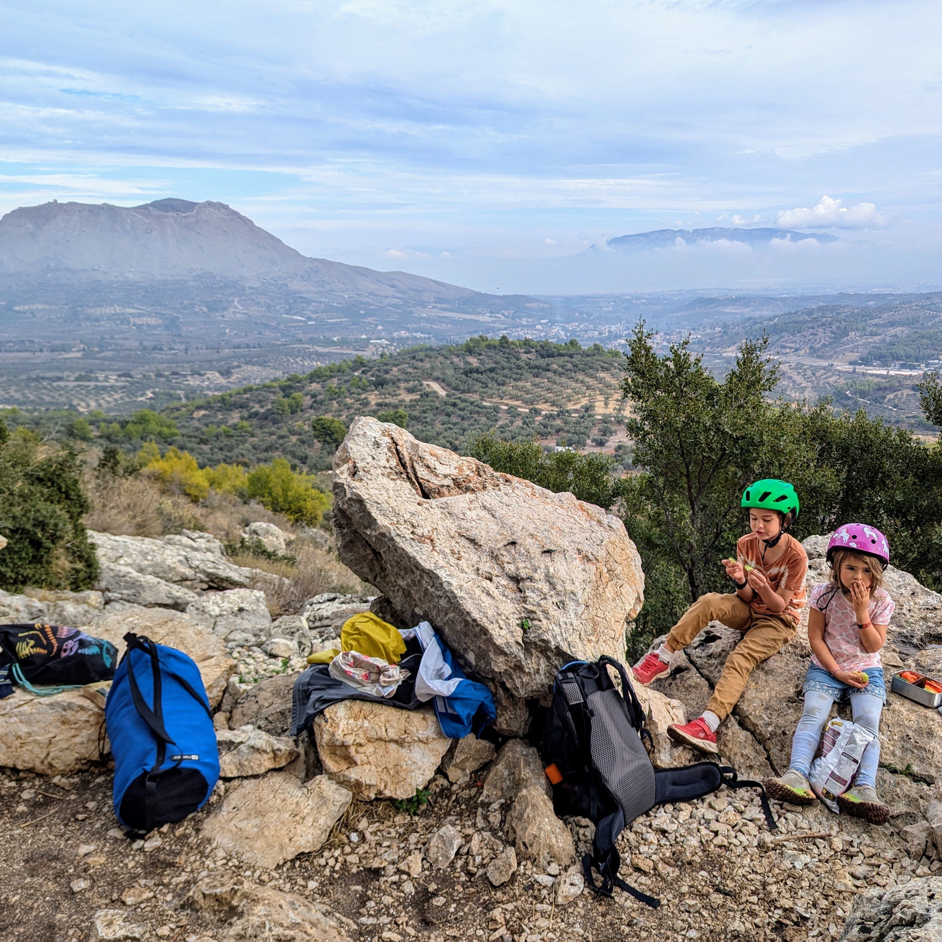 This crag was only a stone’s throw away from Ancient Corinth and easy access – so despite a shaky weather forecast we figured it was worth a visit. You park amongst olive trees and make a short walk up to the very visible rock.