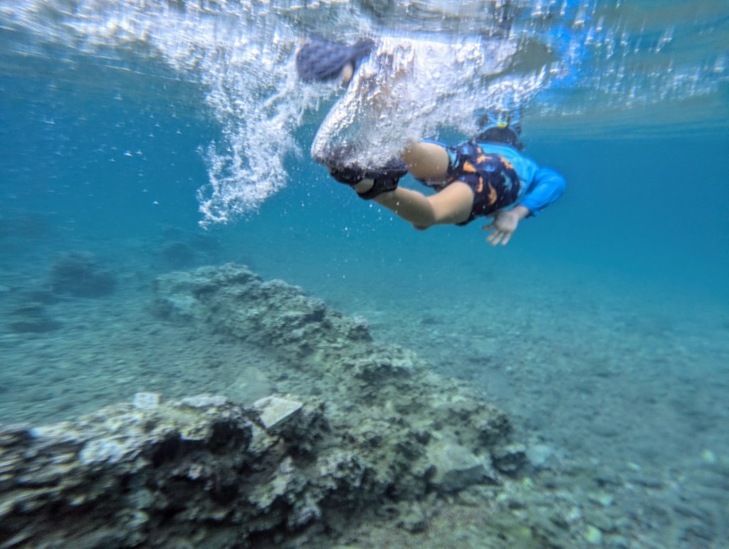 Rocky but safe with little areas to set-up a picnic base.