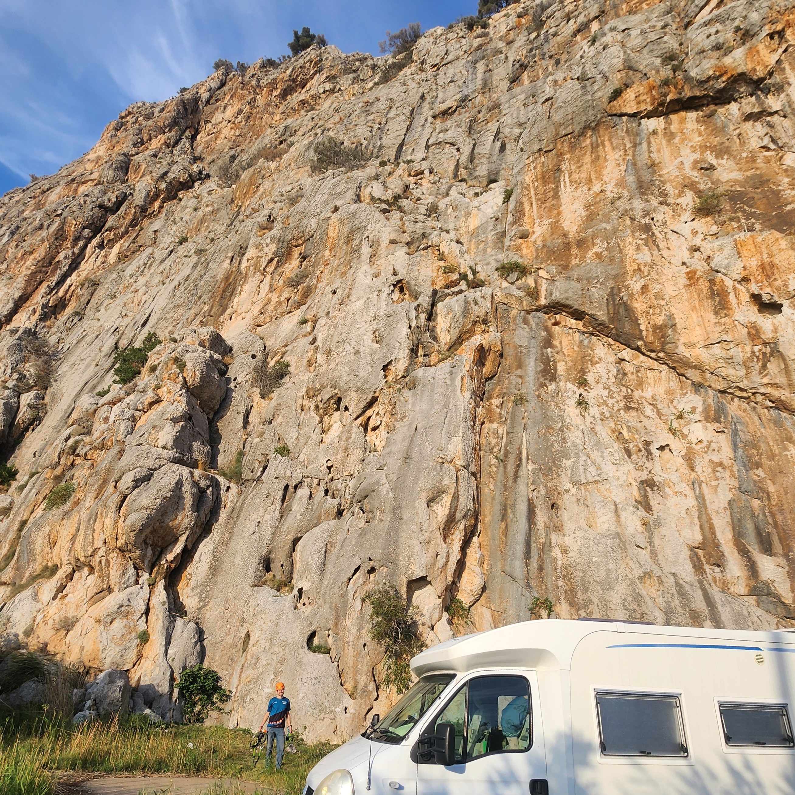 - Camping: climbgreece states that you can free camp at the parking, beautiful spot next to the rock and sea. No services, leave no trace.