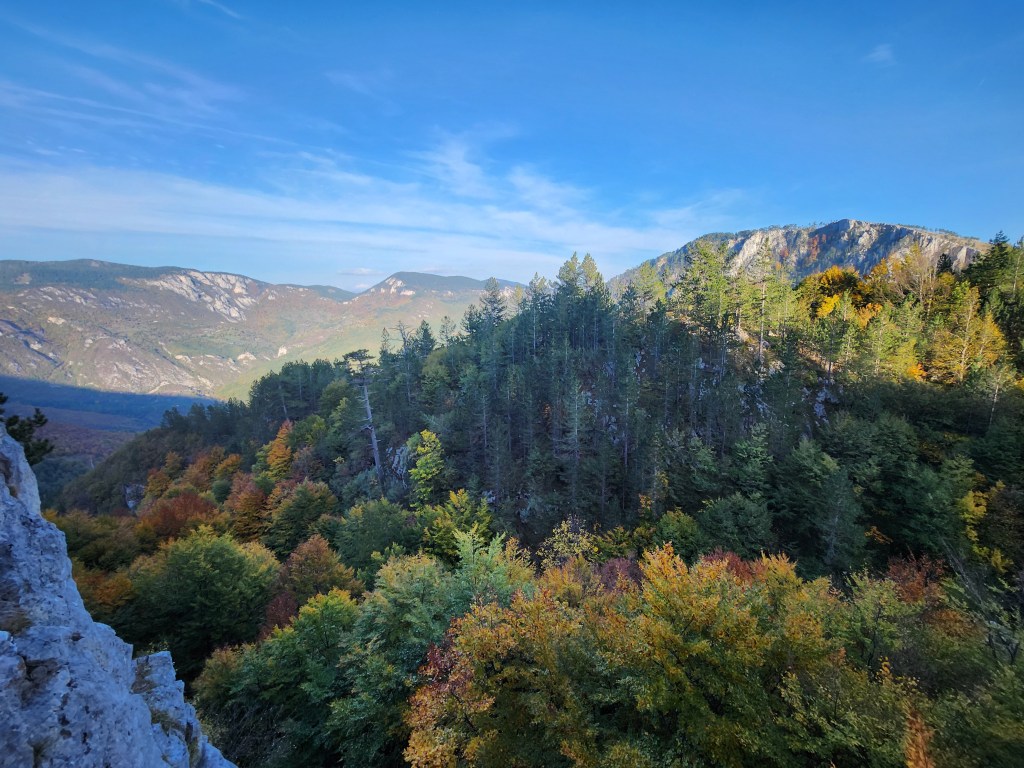 Excellent quality rock, interesting lines at a range of grades and a beautiful, peaceful setting – especially with the blazing autumnal trees. We also met other climbers including: one which had a wealth of knowledge regarding Montenegro crags, another that was drastically strong and could vouch for the hardest climbs, and also a family who we kept meeting up and climbing with for the rest of the trip.