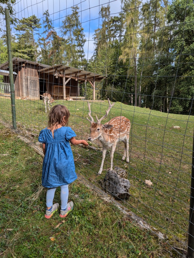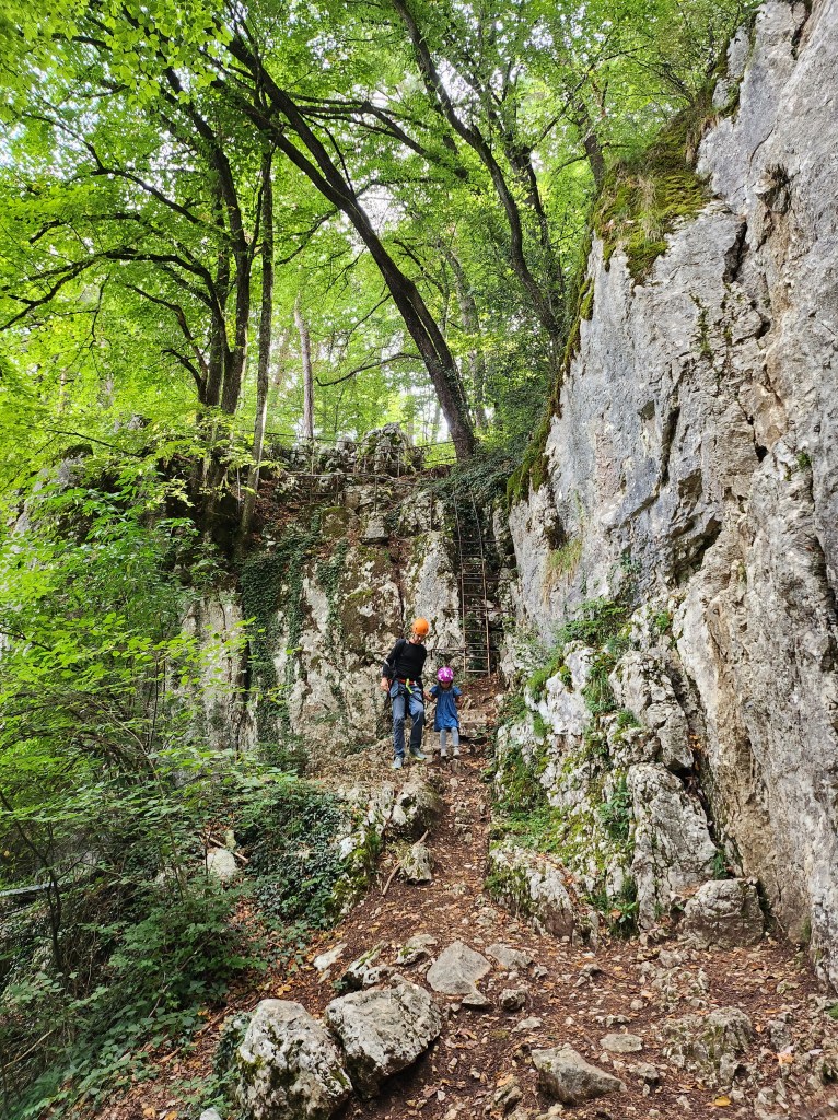 Perhaps it was the summer heat or we were unlucky with the routes we picked but we found the mid-level routes extremely polished. However, family-fun elements made it a great day out… Firstly you walk past deer on the way in, secondly you get to climb down a spindly metal ladder on the approach and finally there is a little section of tiny, easy climbs (aptly named Debutant) which meant the kids got to go up and down ad infinitum. The cherry on top was visiting one of the Lake Annecy beaches afterwards to cool down.